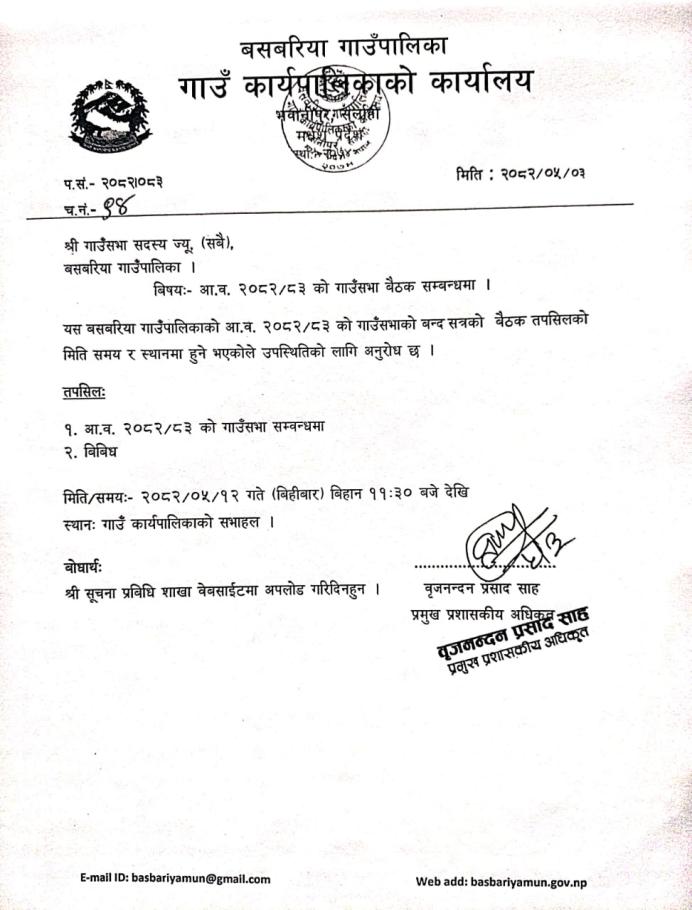 आ व २०८२/८३ को गाउँसभा बैठक तथा नीति तथा कार्यक्रम प्रस्तुति सम्वन्धमा