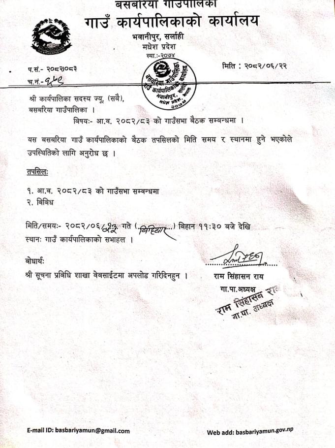 आ व २०८२/८३ को गाउँसभा बैठक तथा नीति तथा कार्यक्रम प्रस्तुति सम्वन्धमा