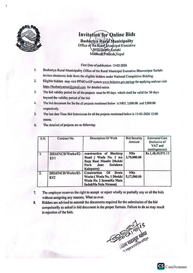 सार्वजनिक खरिद/बोलपत्र सूचना