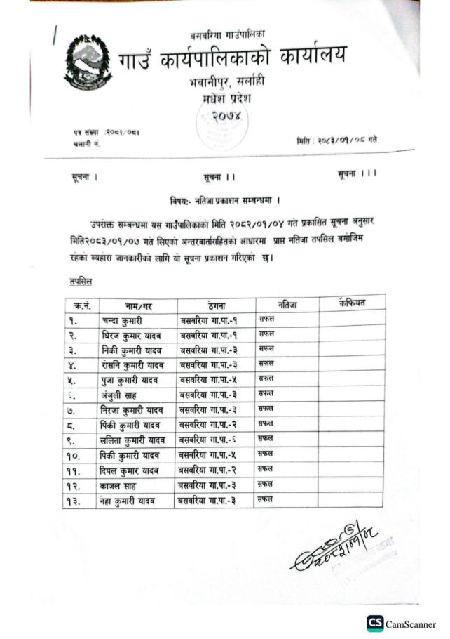 नतिजा प्रकाशन सम्बन्धमा ।