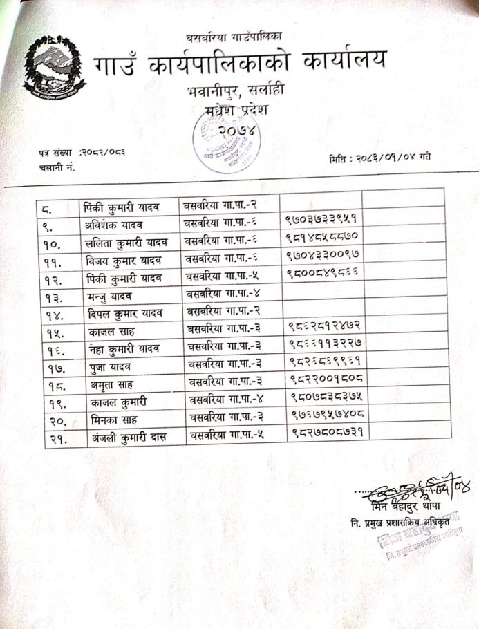 दरबन्दी तेरीज बसबरिया गाउँपालिका