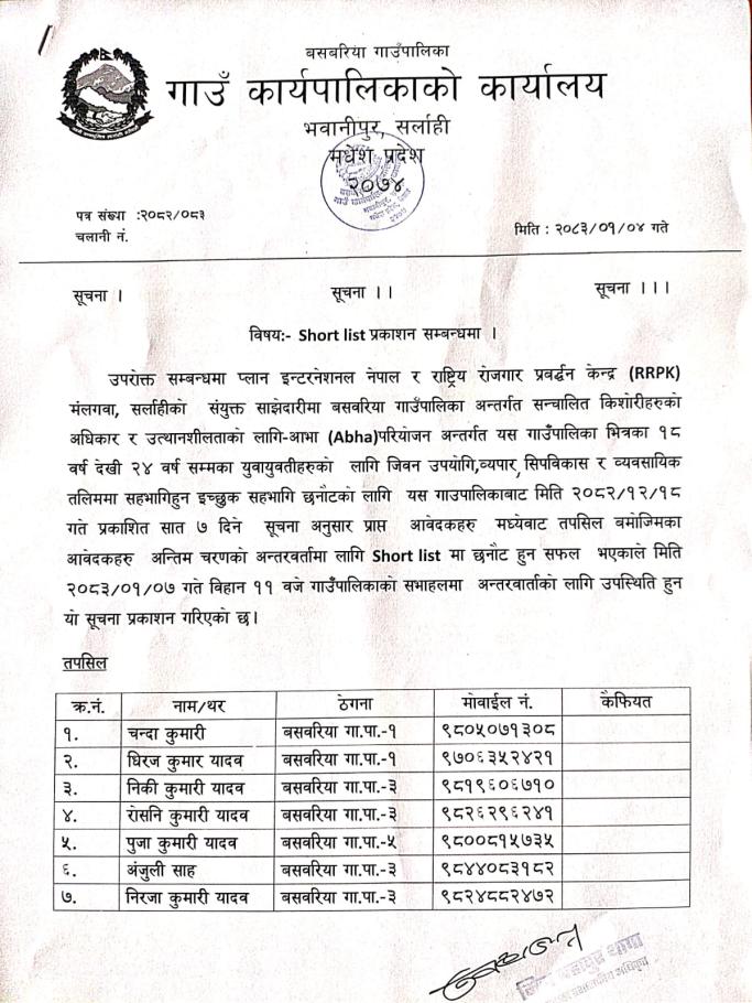 » Abha परियोजनाको Short list प्रकाशन सम्वन्धमा