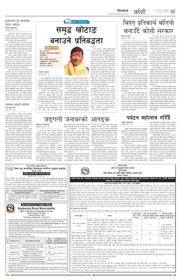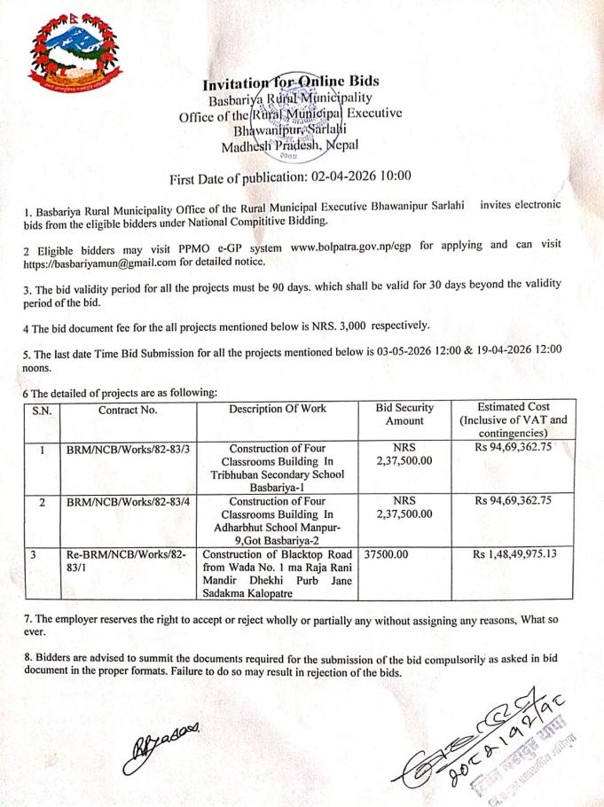 बोलपत्र स्वीकृत गर्ने आसयको सूचना वडा नं. १ स्वास्थ्य चौकी भवन निर्माण